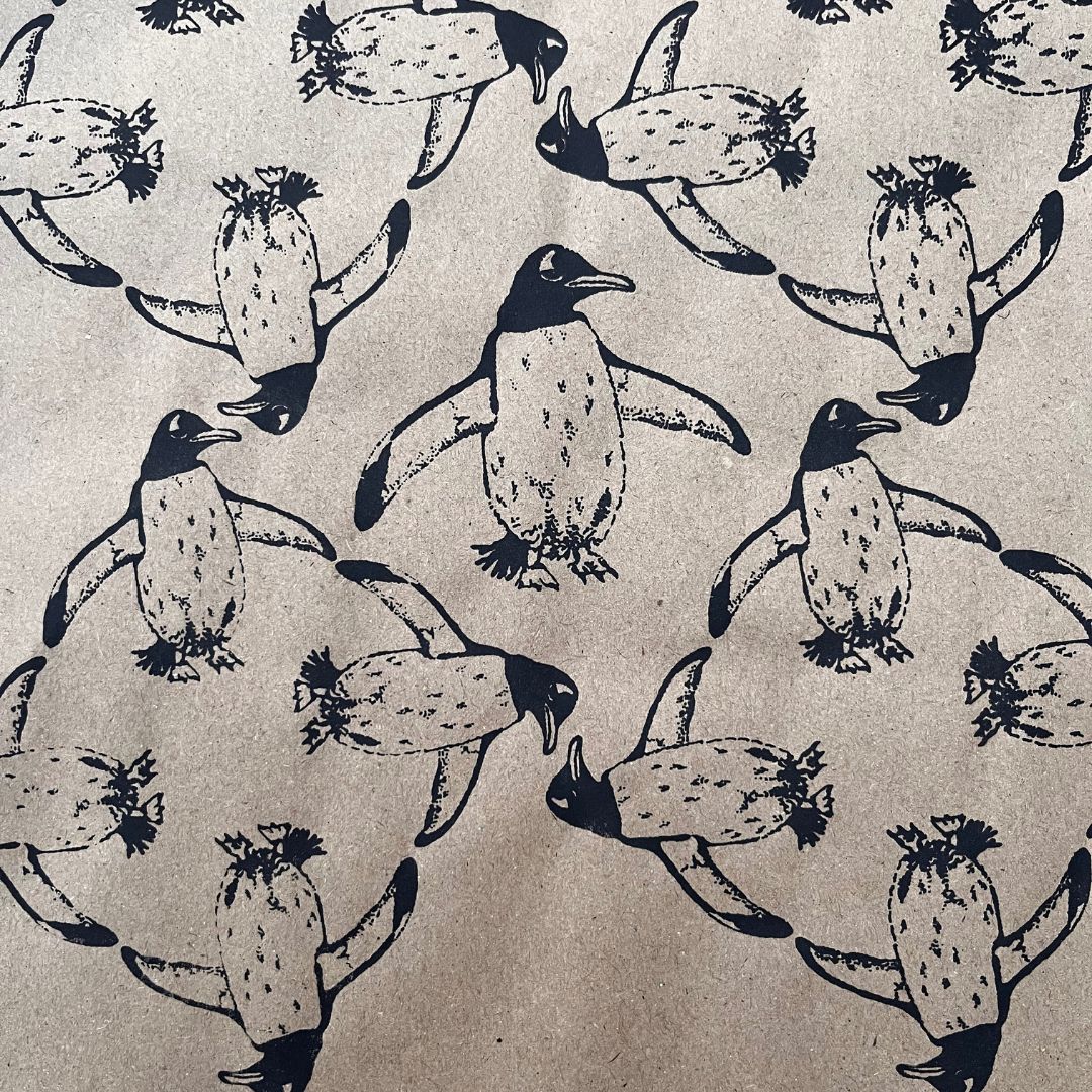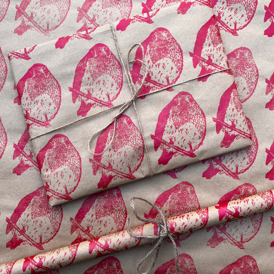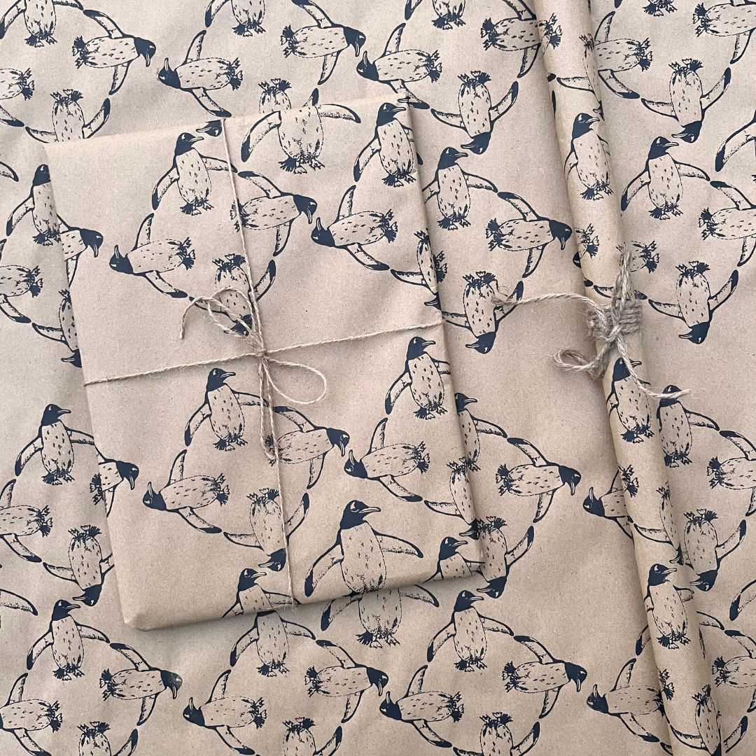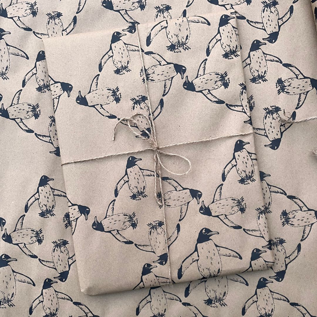 Screen printed using water based ink onto recycled paper. It is a heavier paper than regular wrapping paper 90gsm, so great for reusing after concealing that special gift. Please note that due to the hand screen printing process, slight variations in design placement may occur.