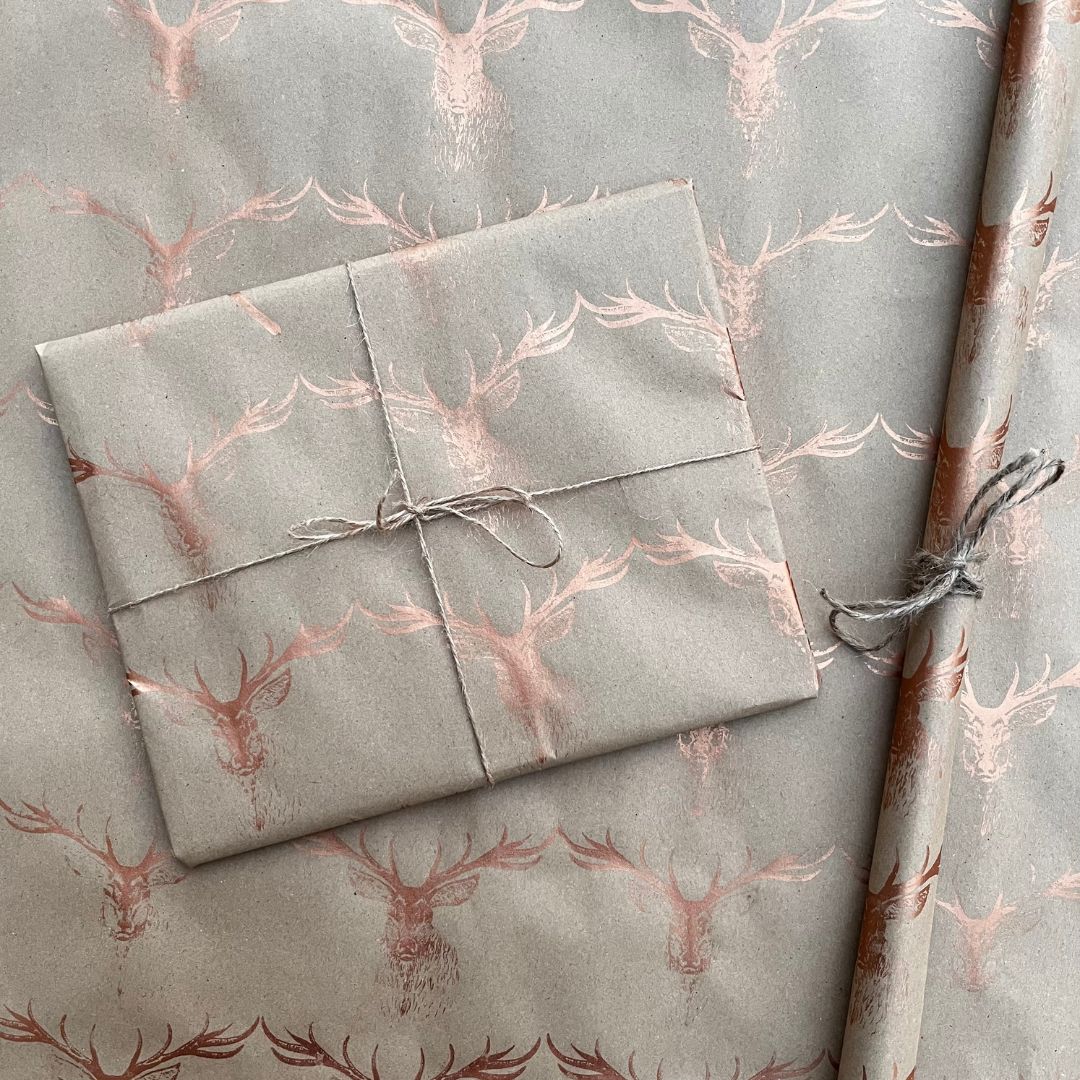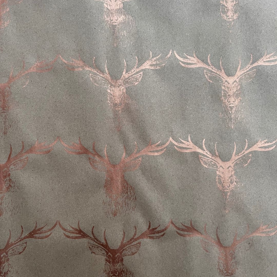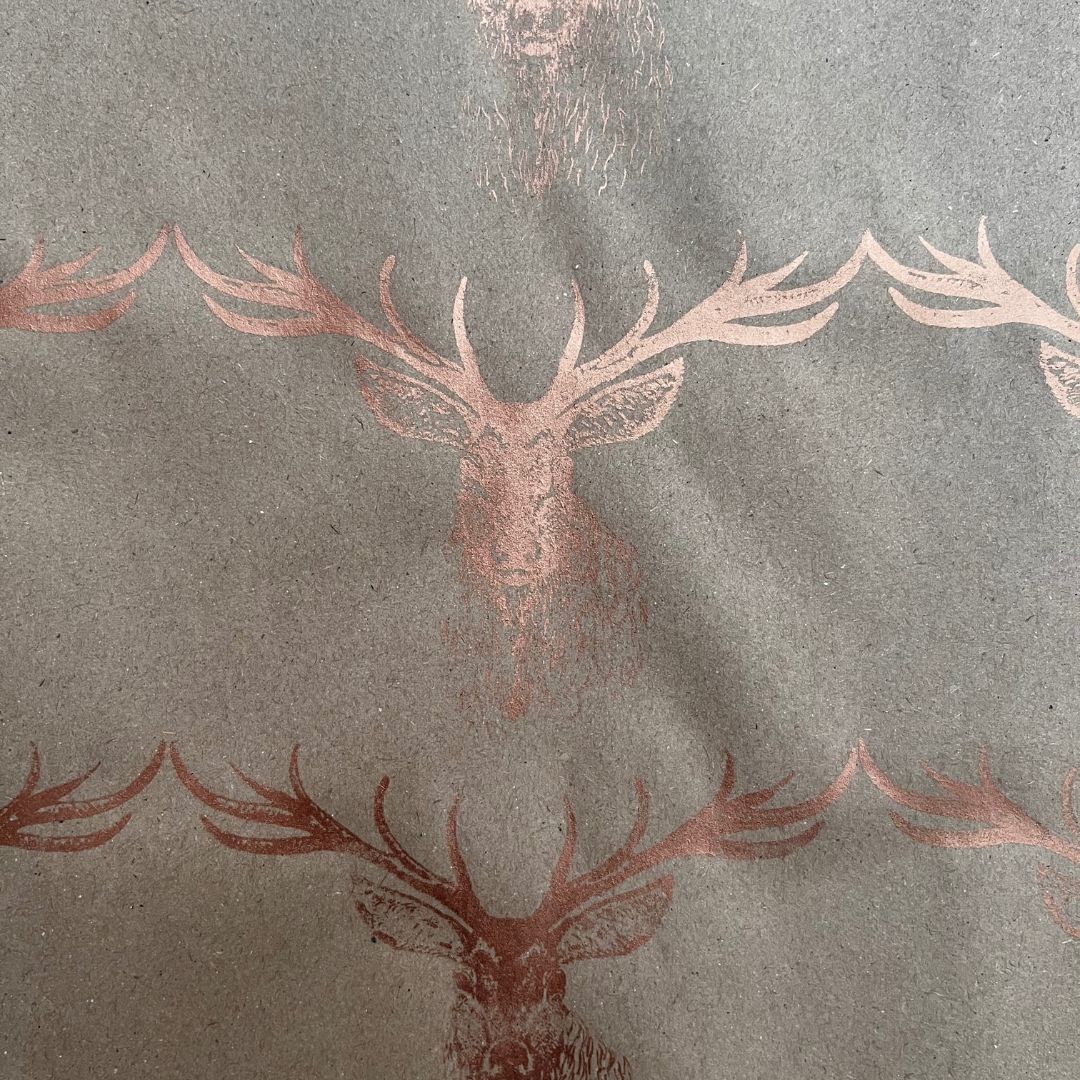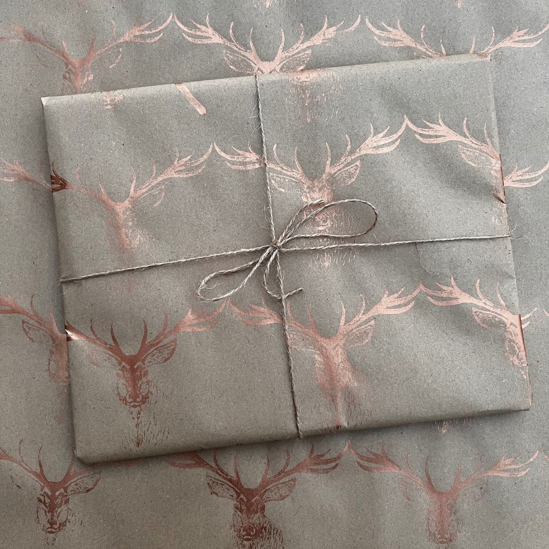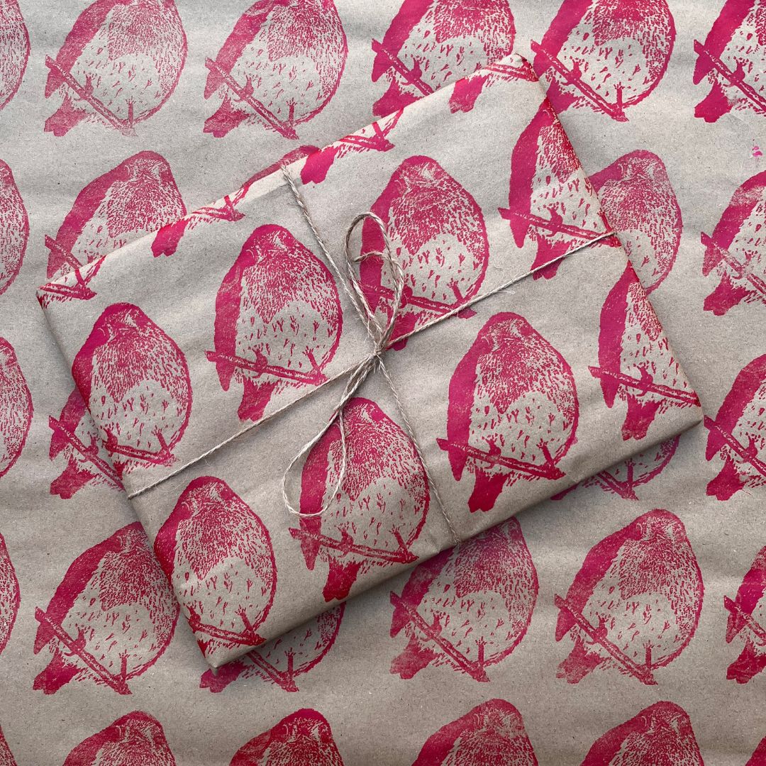 Screen printed using water based ink onto recycled paper. It is a heavier paper than regular wrapping paper 90gsm, so great for reusing after concealing that special gift. Please note that due to the hand screen printing process, slight variations in design placement may occur.
