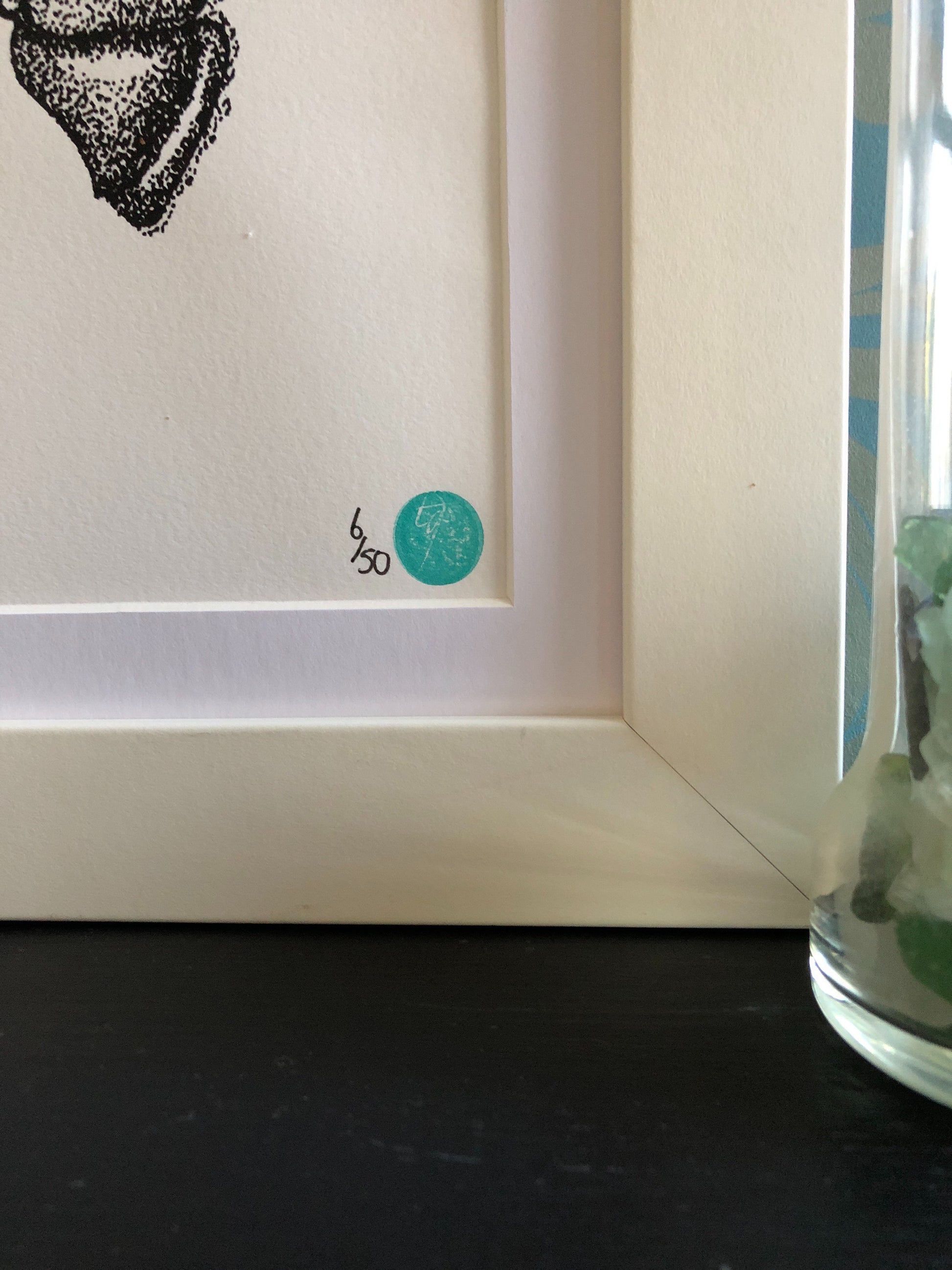 Screen printed by hand, on heavyweight paper. Each print is unique, due to the quality and nature of handprinting. Only 25 of these are mounted. (the remaining 25 prints come unmounted- see unmounted prints)