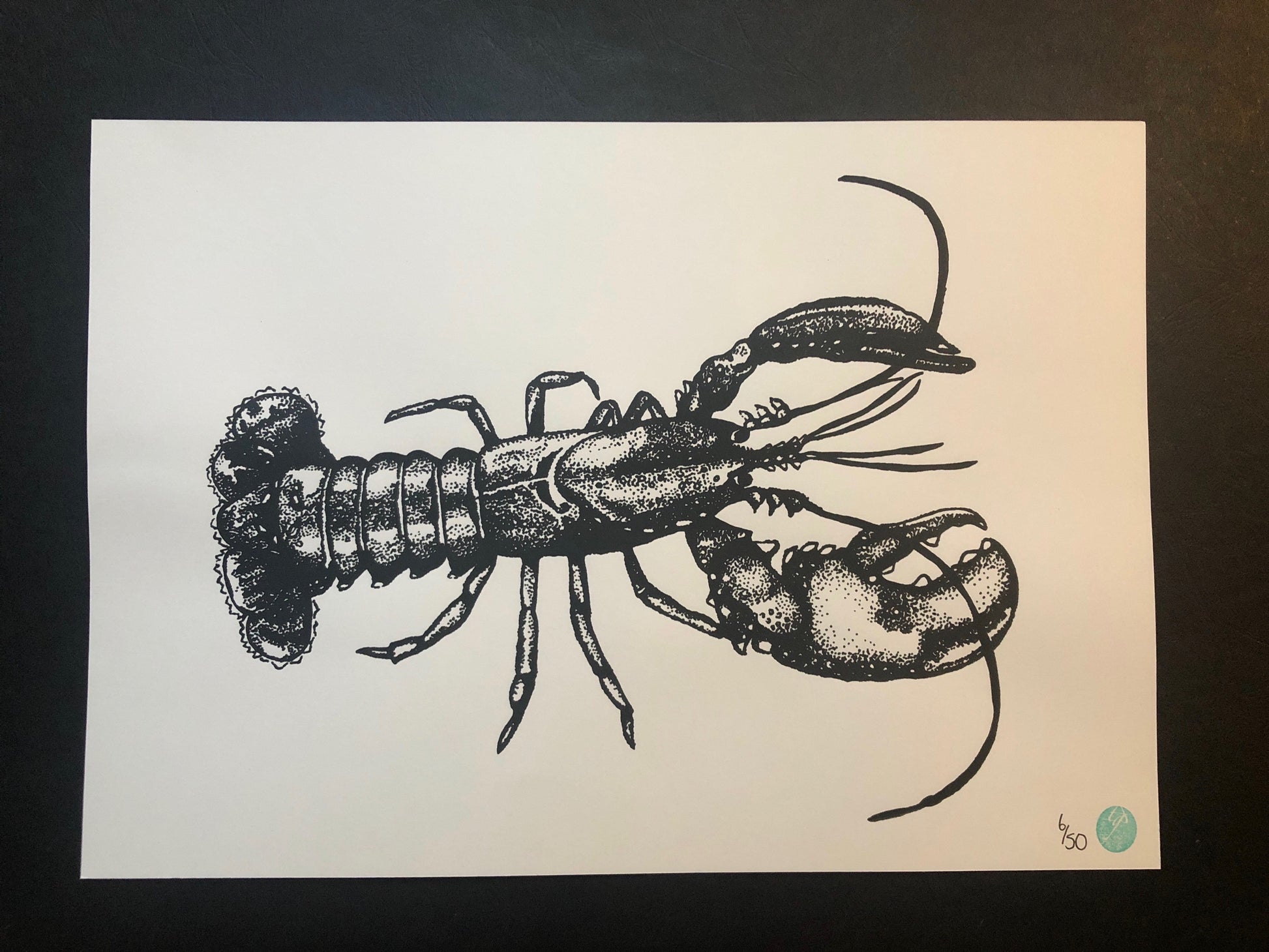 Beautiful handprinted limited edition print of Lars the Lobster, taken from the original illustration by Gem Blastock.