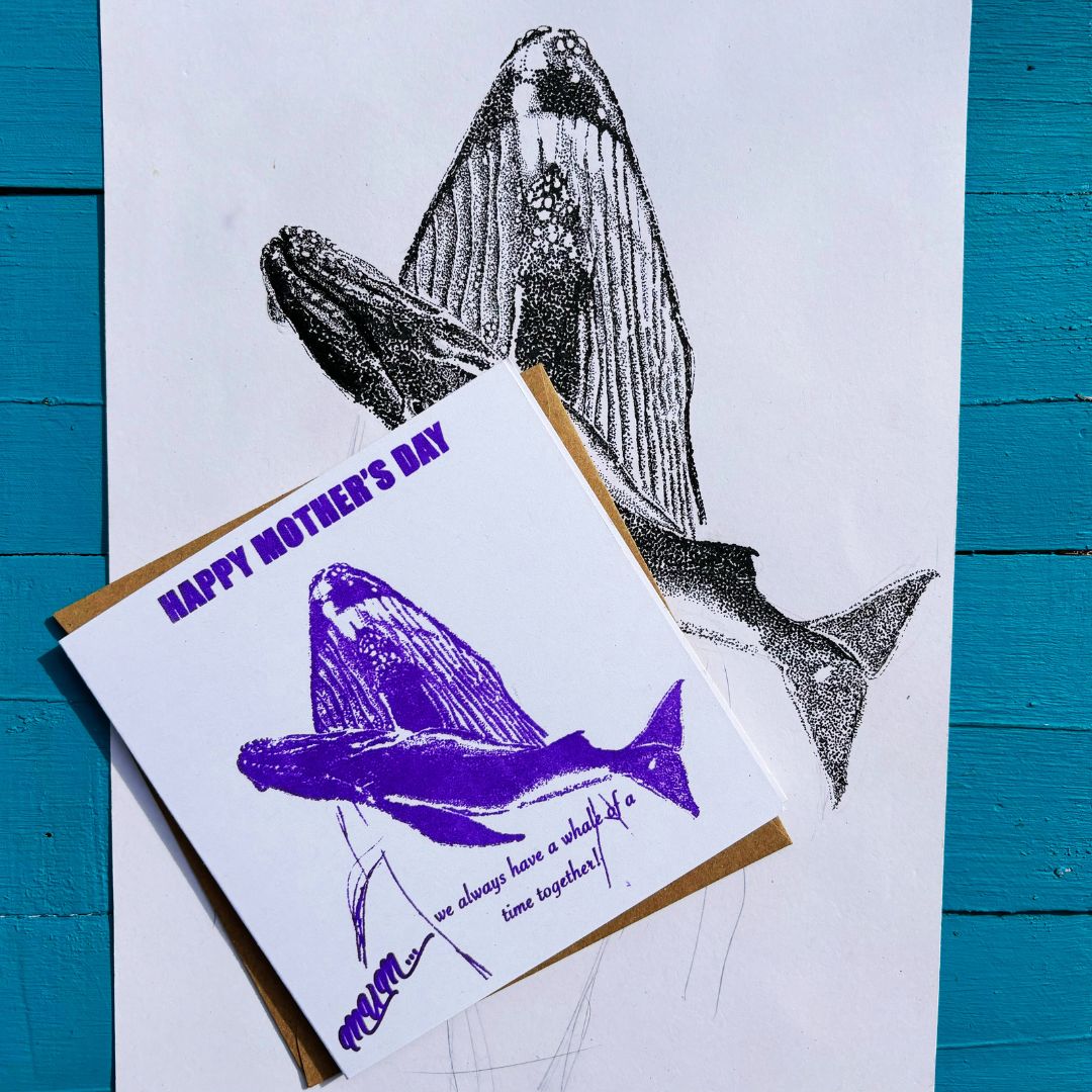 100% eco-friendly, 🐋 Mother's Day card, hand screen printed.