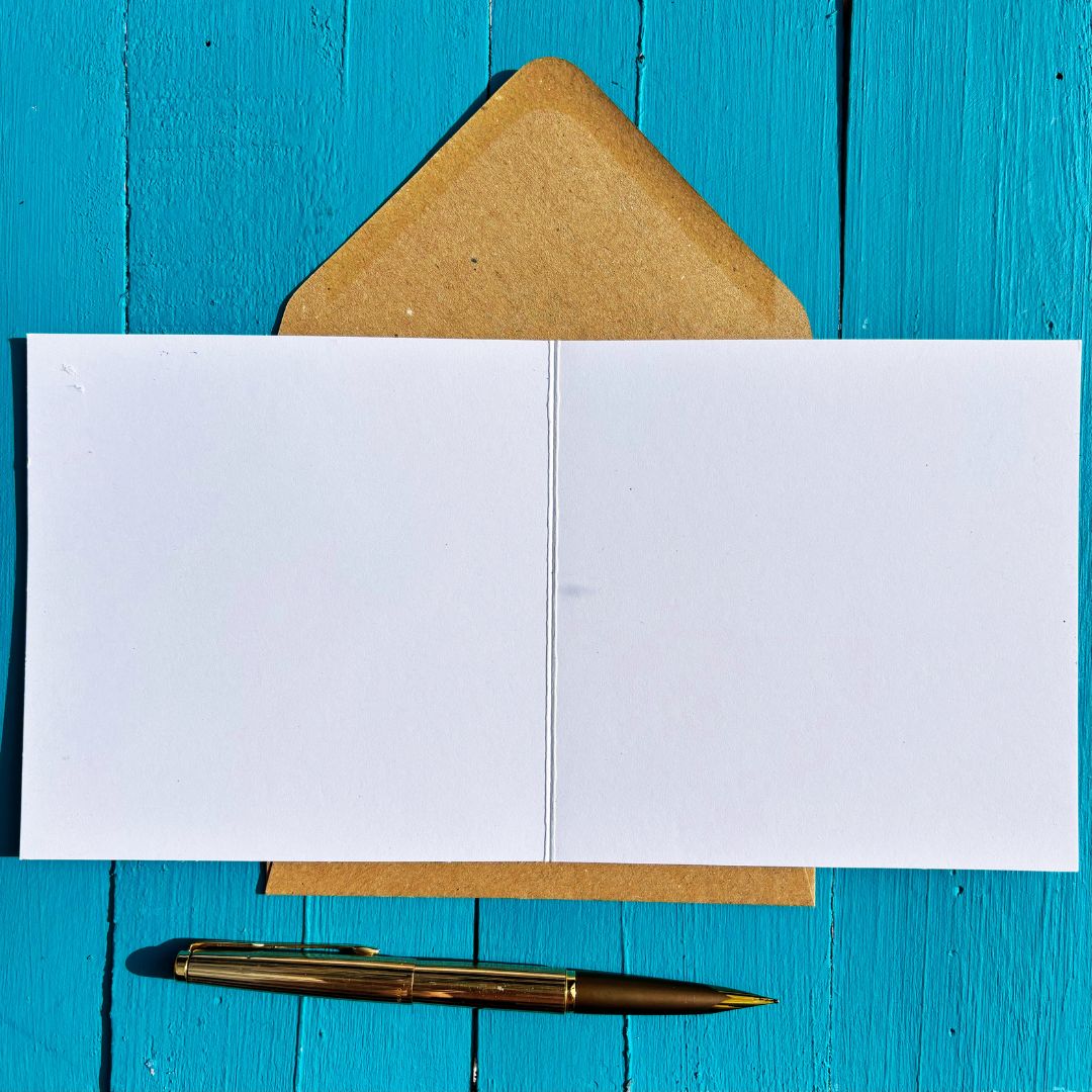 This card is 100% eco-friendly and celebrates Mother's Day. It features my current illustration of a mother Humpback Whale and her calf and is handprinted on 250gsm recycled card stock. The card measures 12cm x 12cm and is blank inside, with a recycled kraft envelope included.