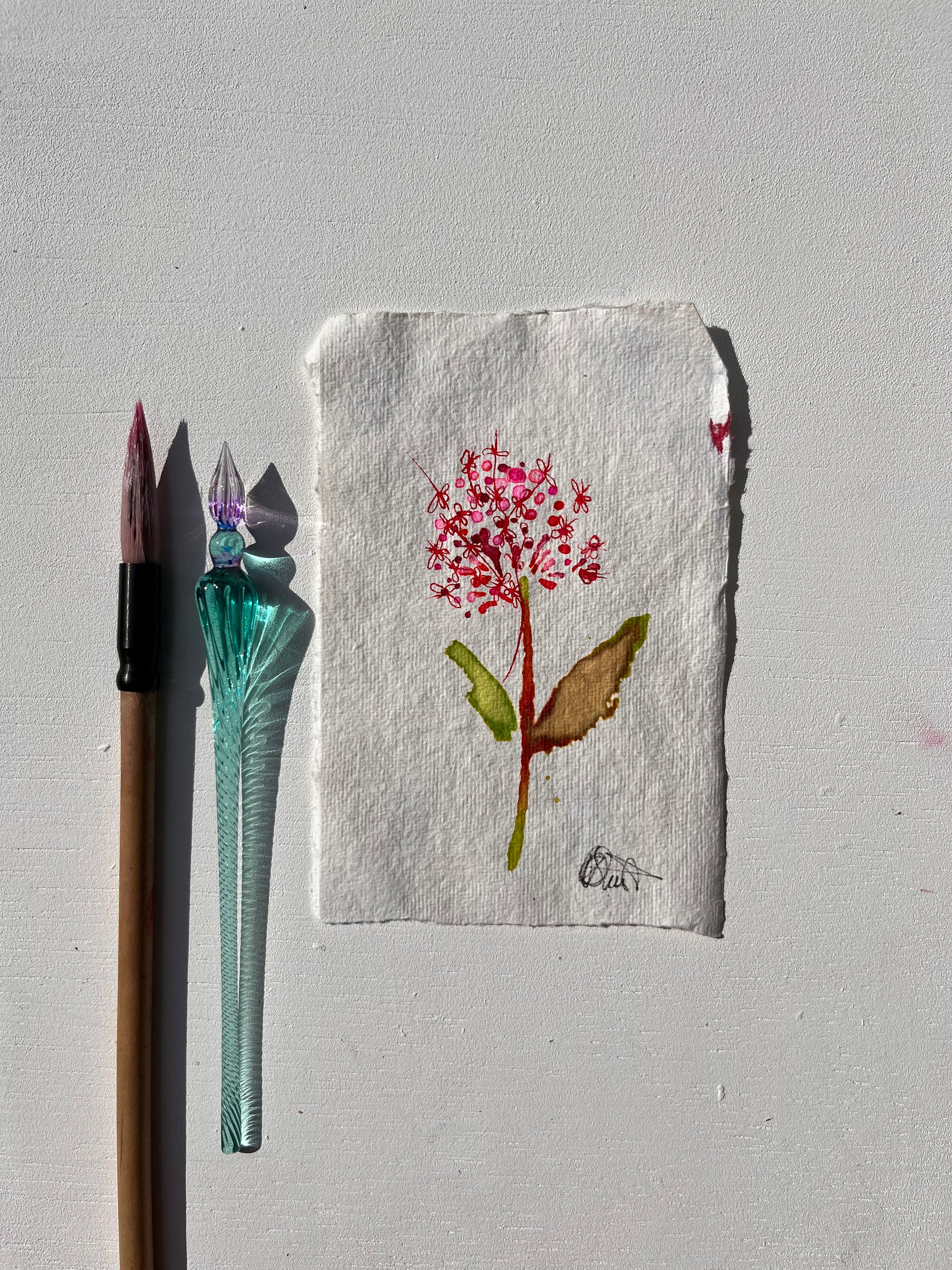 I painted each of these pieces of art from life using a carefully chosen range of colourful and tonal ink. Through a delicate technique of drawing the floral images onto the handmade paper with water, before dropping tiny amounts of ink into it