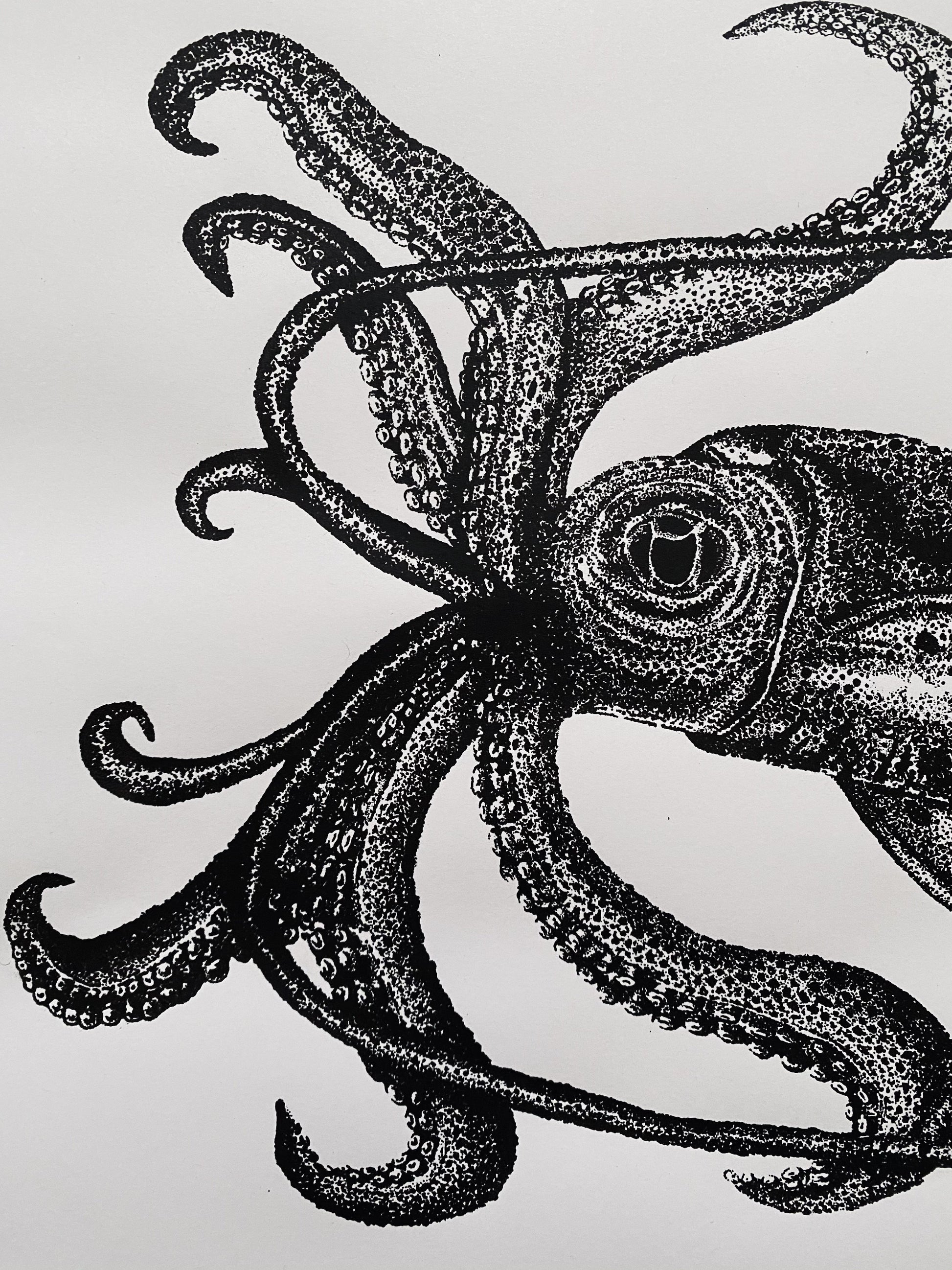 Screenprinting is a technique where the drawing is transfered to a silk screen using a foto emulsion. Ink is then pressed through the screen and transferred on to the item. Due to the nature of this process, every print is completely unique and one of a kind.